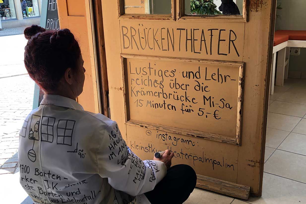 Von Mittwoch bis Samstag von 12:00 bis 18:00 Uhr können Sie hier in kurzen Theaterstücken kluge Dinge über die berühmte Brücke erfahren oder hübsche Dinge zum Mitnehmen erwerben.